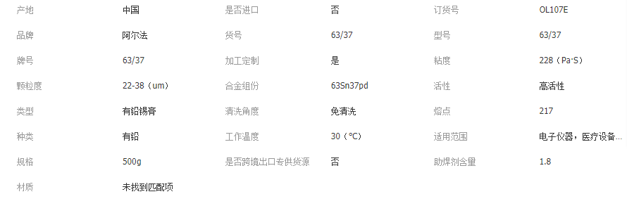 ALPHA阿尔法焊锡膏OL-107E爱法助焊剂有铅6337焊锡膏锡浆